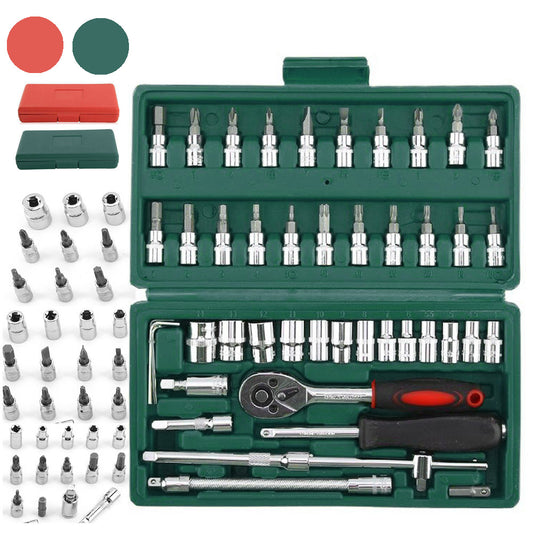 46pcs 1/4" Drive Socket Set Ratchet Screwdriver Bit With Case Garage Repair Tool