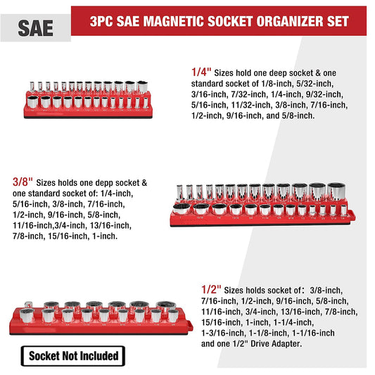 Magnetic Socket Organizer Set 3PC Socket Holder Set 1/4"3/8"&1/2"Drive