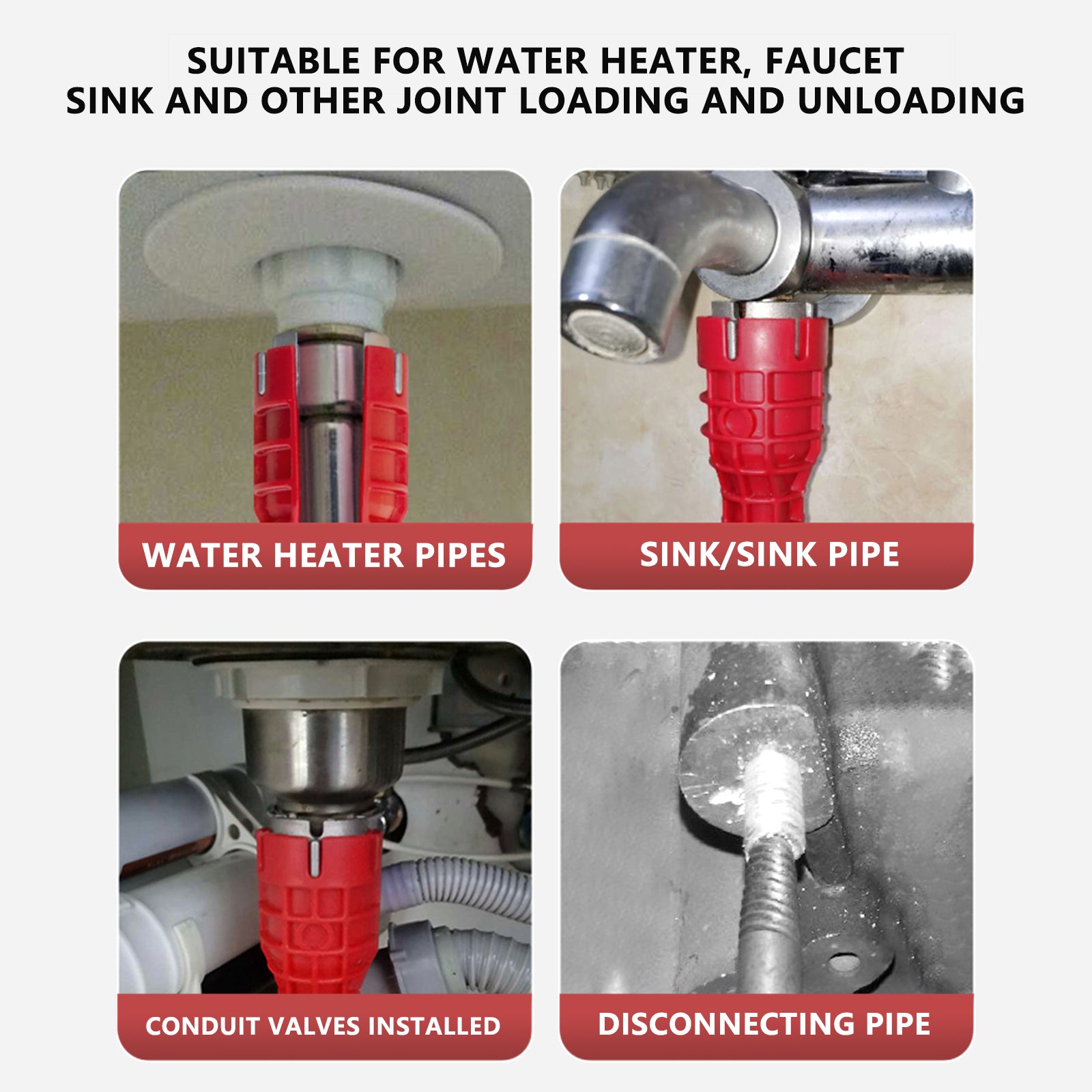 Extra-long design: The wide slot and extra-long shape of the water pipe spanner make it easier to spin faucets, sprayers, and bolts.